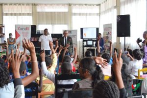 La journée s’est achevée à la Bibliothèque nationale de Madagascar à Anosy, visite marquée par la présence effective de Monsieur le Ministre de la Communication et de la Culture. Cet échange avec les enfants a constitué un temps fort, soulignant le rôle central du livre, de la lecture et de la culture dans la formation des citoyens de demain.